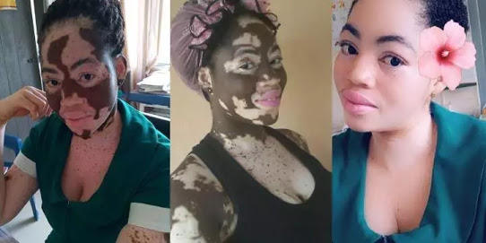 Enam Honya Heikeens is a beautiful Ghanaian nurse who was born with a black skin but her skin got taken over by a skin condition called Vitiligo.